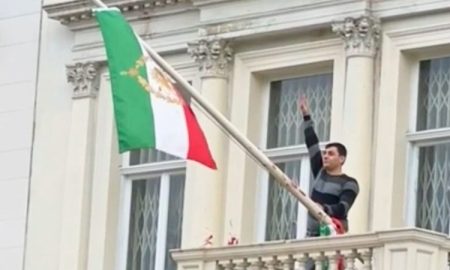 An anti-regime protester scaled the balcony of Iran’s Embassy in London on Friday and tore down the Islamic Republic’s flag, replacing it...